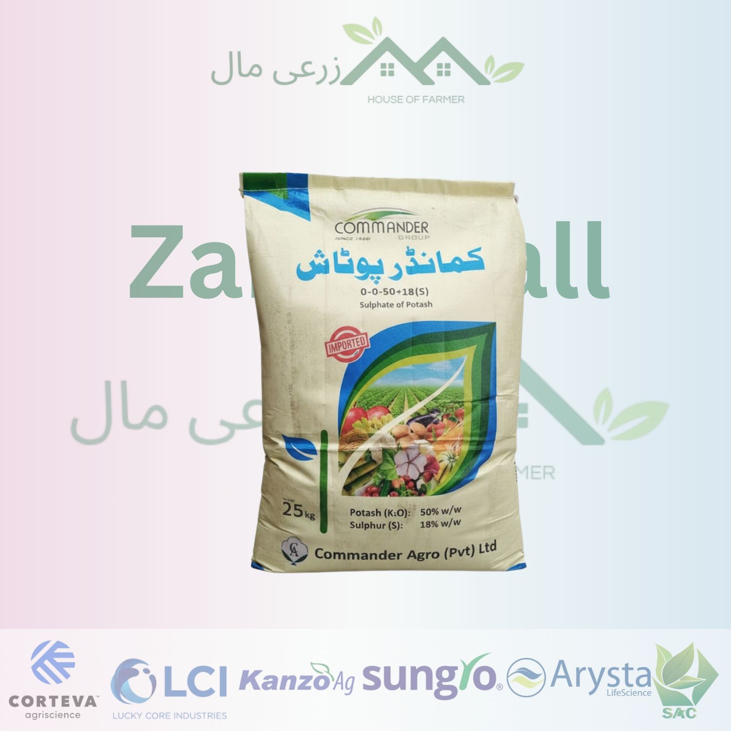 the sop 0-0-50+18s,25 kg sulfate of potash is a product of Comander Group. the category is fertilizers