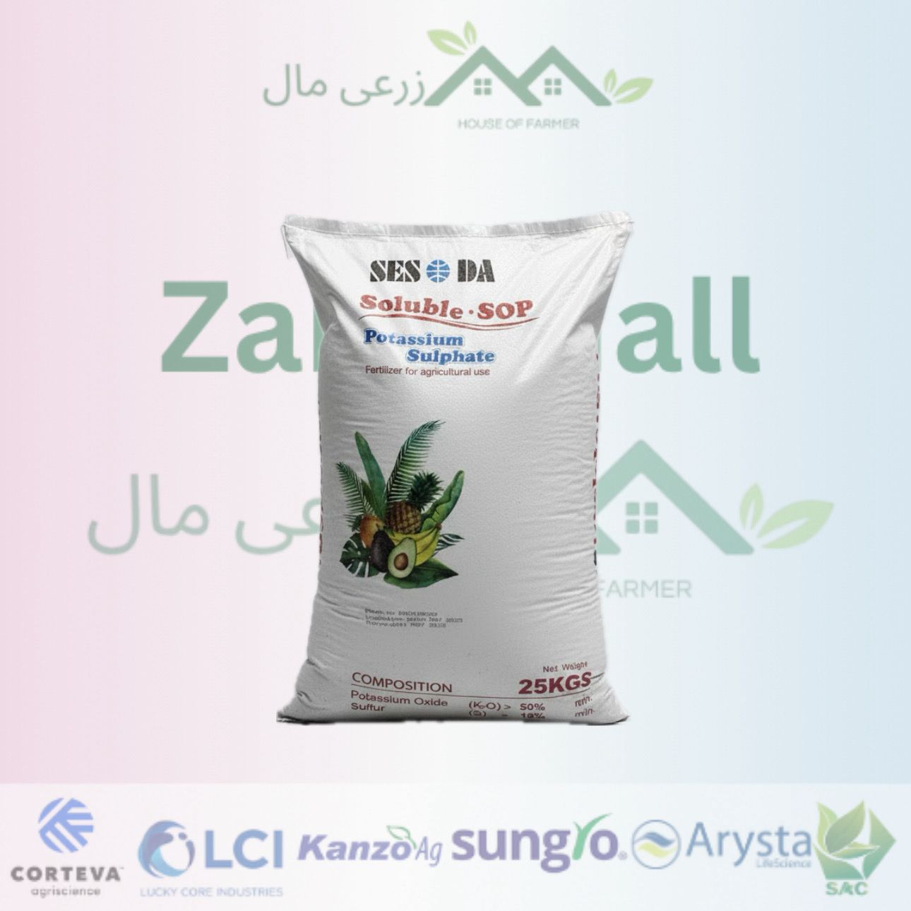 the sop 0-0-50+18s,25kg sulfate of potash is a product of Sesosa Taiwan. the category is fertilizers